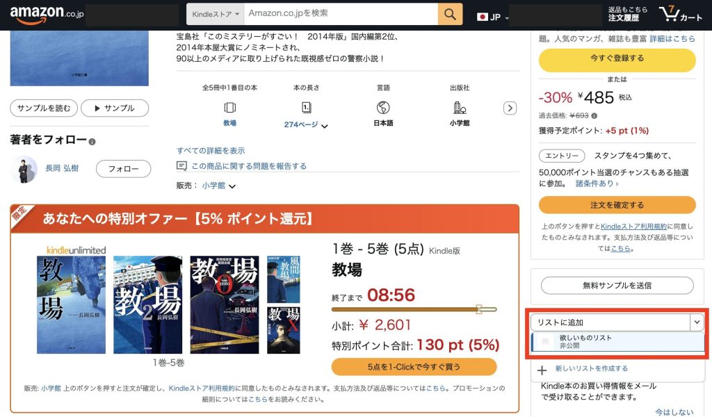 もっとも確実な方法が、気になる本をあらかじめ「ほしい物リスト」に追加しておくことです。
