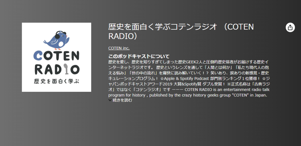 「歴史上の人物や出来事を、現代の視点で深掘りしてくれる点が好きです。難しいテーマでもストーリー性があって聴きやすく、学びとエンタメのバランスがちょうど良いと感じています」