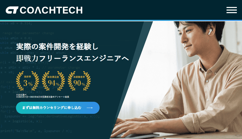 コーチテックは、未経験からフリーランスエンジニアを目指せるプログラミングスクールです。