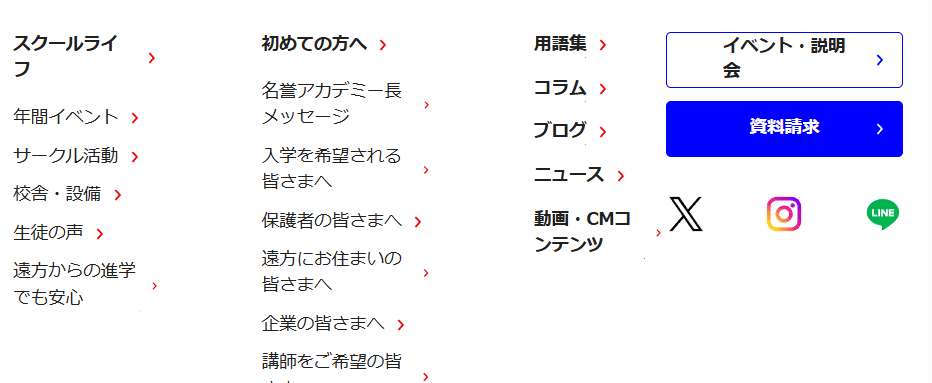 各校舎の開催中の体験授業・学校説明会・オープンキャンパスが一覧で表示されます。