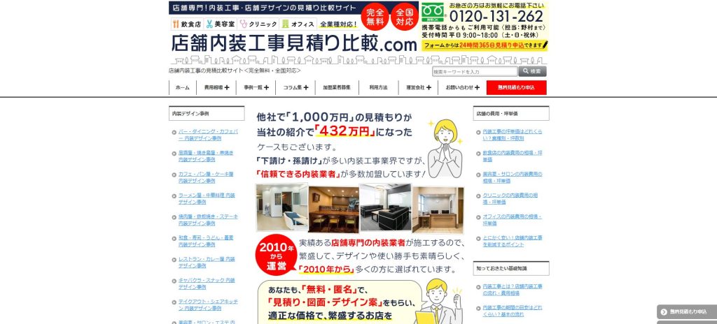 「店舗内装工事見積り比較.com」は、店舗の内装工事を無料で見積りできるサービスです。